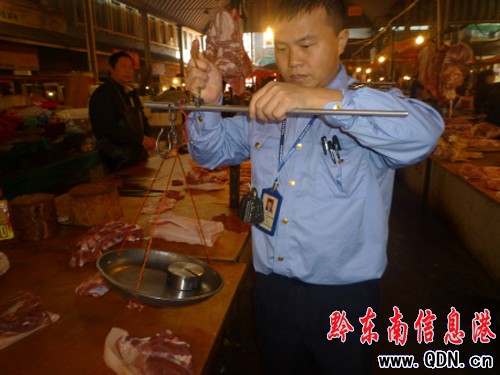當天,共發放宣傳材料500余份,接受群眾咨詢1500多人次。同時,工作人員還對農貿市場使用的案秤、臺秤、電子秤等計量器具進行逐一檢查,為群眾提供和諧的計量環境。圖為執法人員在檢查計量器具。(石慶偉 陳守玉)