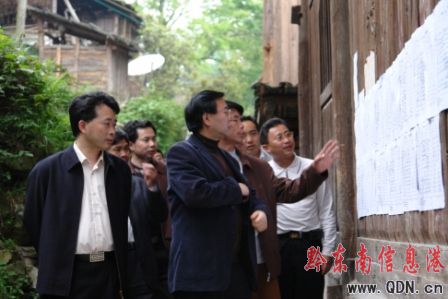 本港訊(楊秀廷) 4月12日,州長李飛躍一行到錦屏縣就移民、林改、新型農村合作醫療、新農村建設和旅游開發等進行調研,常務副州長李再勇、省農業廳巡視員龔紹濤、州長助理唐順鐵及州移民、旅游等部門負責人隨行調研。