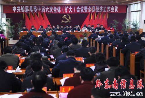 本港訊 (楊勝屏 通訊員 吳育瑞 攝影報道)1月26至27日,中共錦屏縣委十屆六次全體(擴大)會議暨全縣經濟工作會議隆重召開。縣領導陳英華、袁尚勇、王經勇、朱漢琴、宋華、龍永貴等出席會議。