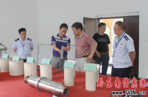 州國稅局鐘方軍副局長一行在開發區局國稅局龍堅局長的陪同下,到開發區黃帝車輛凈化器有限公司了解該企業的生產經營情況,圖為該公司總經理介紹該產品的生產工序及職能、作用。