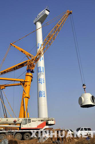 華能乳山風力發電機組吊裝現場