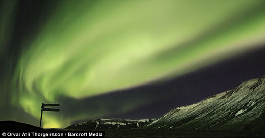 2012年,科學家會宣稱最南端的北極光將出現于羅馬。冰島著名攝影師奧瓦爾-索格森記錄了近年來逐漸增強的北極光現象,過去4年來,他冒著零下攝氏度的嚴寒拍攝了大量壯觀美麗的北極光照片。