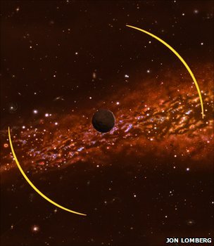 “流浪”行星像一枚透鏡,彎曲遙遠恒星的光。