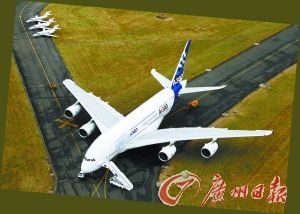 空客A380是迄今全球最大客運飛機,它有4個發動機,雙層客艙,設計航程大約1.5萬公里,載客量525人,系與主要競爭對手波音公司爭奪市場份額的“拳頭產品”。