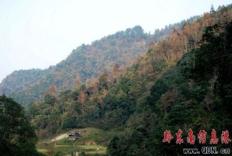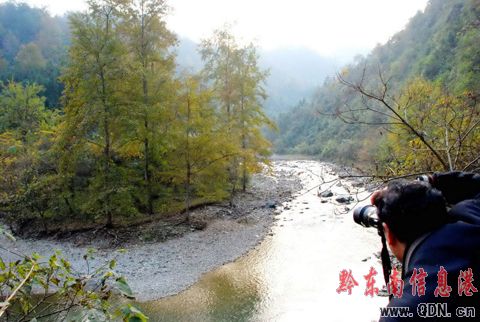 初冬時節(jié),貴州省雷公山國家自然保護區(qū)林盡染,境內(nèi)臺江縣南宮鄉(xiāng)的苗寨和冬日原始森林風光美景交相輝映,令到此旅游觀光的游客流連忘返。圖為11月30日, 記者拍攝的臺江縣南宮鄉(xiāng)交密河風景區(qū)冬日風光。(陳沛亮 攝影報道)