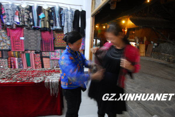 就這樣,李珍思之再三,于2002年結束艱難的打工歲月,背起行囊回到久別的家鄉西江苗寨。先是開了一家食品店,隨后又改做民族旅游工藝品、小客棧,后改成"阿濃苗繡坊"。2003年,雷山縣苗年節在西江舉辦,李珍借此機會開辦了"阿濃之家",將苗繡坊、客棧、餐飲三合為一,雖然賺了一些錢,但規模小,利潤少,一天從早忙到晚也賺不了多少。2005年,在貴州省委省政府大力發展鄉村旅游的背景下,李珍從鄉村旅游中看到了希望,正在這時,李珍得知2008年貴州省第三屆旅游產業發展大會在西江召開,這是一個絕好的機會,李珍欣喜萬分,在反復權衡比較之后,李珍決定在原來的"阿濃之家"基礎上,再蓋一間兼餐飲、住宿為一體的鄉村旅館,把鄉村旅館做大做強,上規模、上檔次,上水平。然而,錢從哪來?正在李珍為錢一籌莫展的時候,透過朋友介紹,得知信用社可以貸款。于是,李珍抱著試一試的想法,大著膽子來到信用社遞交了20萬元的貸款申請。很快,貸款得到批準。2007年5月,李珍用這筆貸款加上自有資金,開始新建"阿濃苗家樂",一年后,"阿濃苗家樂"竣工并對外營業。