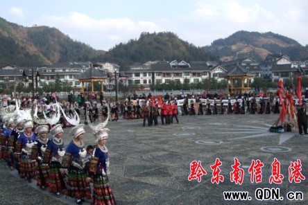 2011年春節期間,陽光明媚,雷山縣城鄉處處洋溢著節日的喜慶氣氛——陣陣祥和的氣息撲面而來,全縣各族人民興高采烈喜慶新春佳節,城鄉大街小巷盞盞燈籠高掛,喜氣洋洋,暖和的陽光更是把節日推向熱潮,處處迸發出盎然的春意,各家各戶取出早已備好的“團年炮”燃放,點燃高空禮花炮照亮了天空。(張希才)