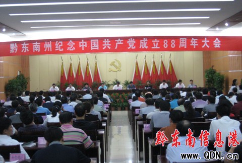 本港訊 (記者 周亮 攝影報道)為隆重紀念中國共產黨成立88周年,緬懷黨的豐功偉績,回顧黨的光輝歷程,6月30日,我州在凱里召開大會隆重紀念中國共產黨成立88周年。據悉,早在1929年,苗鄉侗寨的土地上就點燃了革命的火種。