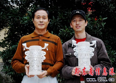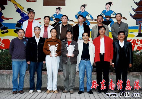 他們以攝影作品為載體,向世界展示我州神奇富饒、山川秀麗、深厚的原生態歷史文化積淀與秀美壯闊的原生態山川風物,攝影作品為載體,向世界展示我州,以光影為媒,讓國內外朋友喜歡我州,為我州對外宣傳作出了積極的貢獻。圖為10月12日,獲獎者黃明光、張建林手捧獎杯和凱里攝影界朋友合影。