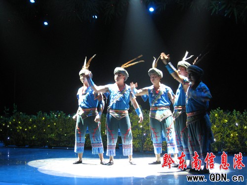 本港訊 (記者 楊輝)優美的樂曲在夜色里流淌,多彩的舞蹈在激情中飛揚。12月2日晚,遵義代表團在凱里市行政中心中央會場進行第四屆貴州少數民族文藝會演的第三場會演——《神砂仡佬》。