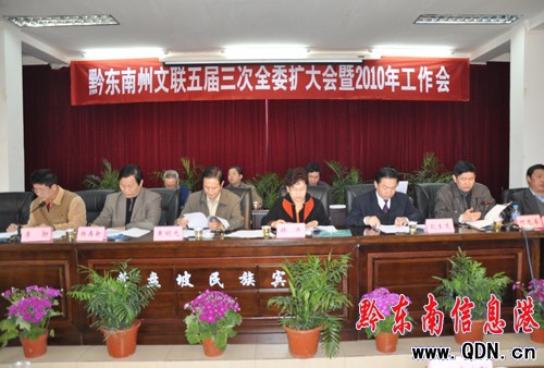 本港訊 (記者 楊驥 攝影報道)3月12日,黔東南州文聯第五屆第三次全委擴大會暨2010工作會在凱里召開,中共黔東南州委副書記韓卉、州委常委、州委宣傳部長耿生茂、州政協副主席黃明光等領導出席了會議。