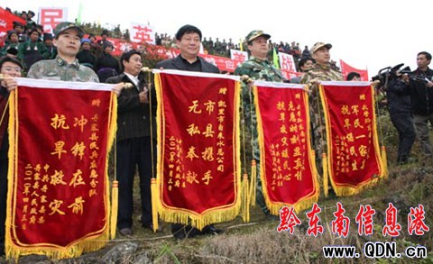 (丹寨縣委、縣政府向凱里市自來水公司及參戰(zhàn)部隊贈送錦旗)