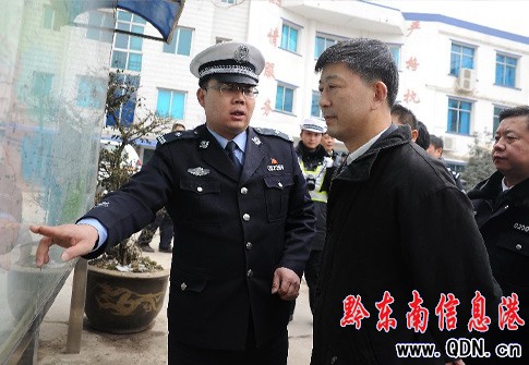 崔亞東首先來到丹寨縣興仁鎮派出所、司法所等單位親切看望基層一線民警,與他們一起交談,了解轄區治安狀況、發破案情況、窗口服務和基層基礎建設等情況。隨后,崔亞東一行還先后走訪慰問了龍泉鎮派出所、縣交警大隊、縣公安局指揮中心、縣看守所及縣政法委等基層單位實地了解工作情況。在丹寨縣交警大隊,崔亞東看到該大隊在基礎設施建設和隊伍建設上取得的實績時,他高度稱贊丹寨縣公安局在警力、經費、執法規范等多個方面向基層一線傾斜的做法。在龍泉鎮派出所,當崔亞東了解到該所積極創新工作思路,讓工作沉到基層,沉到百姓中間,努力把矛盾化解在基層,深受縣委、政府和老百姓好評時他充分肯定了該派出所的做法。在丹寨縣公安局指揮中心,崔亞東全面了解了公安局的信息化建設情況。在縣看守所,崔亞東視察了看守所的辦公場所、審訊室和監舍,并與看守所民警進行了親切交談,了解他們生活、工作中存在的困難。他每到一處,都實地察看各部門的制度化建設、隊伍建設和基礎建設,深入到各基層單位辦公室,問需于民、問計于民,并對丹寨縣委、政府對公安工作的高度重視和大力支持表示衷心的感謝,對丹寨縣公安局的工作給予充分肯定。