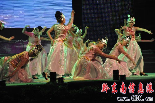 開幕式隨后舉行了大型苗族歌舞詩畫——《甘囊香》的精彩演出。整場演出分為《序》和《神秘甘囊香》、《守望甘囊香》、《多彩甘囊香》、《歡聚甘囊香》四個部分,表現(xiàn)了苗族人民對神往之地的向往和對明天美好生活的渴望之情。