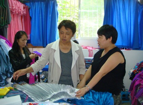 黔東南州苗嶺侗鄉(xiāng)民族服飾有限公司系黔東南州民族歌舞團(tuán)下屬的國(guó)有獨(dú)資企業(yè),是集苗侗民族服飾、民族工藝品、民族飾品研究開發(fā)生產(chǎn)銷售的企業(yè)。當(dāng)看到工人們加班加點(diǎn)正忙著趕制建黨紀(jì)念活動(dòng)演出服裝,劉州長(zhǎng)親切地向他們表示慰問(wèn)。劉州長(zhǎng)指出,企業(yè)要從長(zhǎng)遠(yuǎn)思慮,提高黔東南苗侗民族服裝專業(yè)生產(chǎn)能力,以滿足州內(nèi)外對(duì)民族服裝及文化的需求,帶動(dòng)地方經(jīng)濟(jì)及旅游商品快速發(fā)展,為我州苗侗民族文化、苗侗民族服裝、民族旅游產(chǎn)業(yè)的發(fā)展作出積極貢獻(xiàn)。
