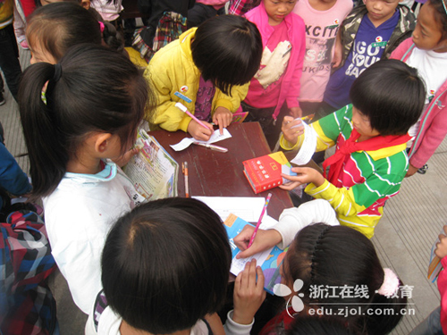 為幫助愛讀書的他們,浙江省縉云縣碧川小學大隊部向全校少先隊員發出“他們‘書’不起,讓我們一起閱讀”為黔東南州從江縣的小伙伴們捐贈一本字典或一本書的倡議。短短數天,該小學大隊部就收到1400多本圖書。少先隊員們把家里已經不讀的故事書,不用的《新華字典》,紛紛找出來,并寫上祝福的話,愿從江的小伙伴們能和他們一起閱讀,共同成長。
