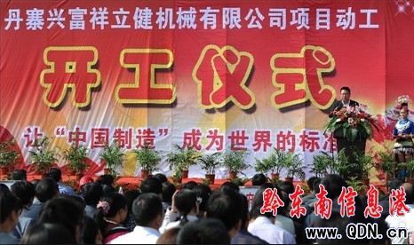 開(kāi)工典禮由侯美傳主持,縣委書(shū)記張淼致詞,張淼在致詞中說(shuō),真誠(chéng)希望丹寨縣人民在各級(jí)各部門(mén)的帶動(dòng)下,在全縣人民的努力下,全力招商引資,打造項(xiàng)目,趕上發(fā)達(dá)地區(qū);要舉全縣之力,制定優(yōu)惠政策,創(chuàng)造良好的投資環(huán)境,搞好各項(xiàng)服務(wù),讓更多的投資者來(lái)到丹寨投資創(chuàng)業(yè),讓財(cái)政稅收不斷增長(zhǎng),讓全縣廣大人民的生活過(guò)得更幸福,更有尊嚴(yán)。