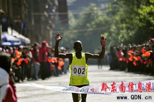 肯尼亞選手基普桑率先沖破第一賽段終點(張鴻 攝)