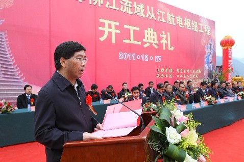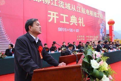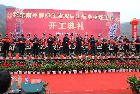 據黔東南政府網消息 2011年12月27日,黔東南州都柳江流域從江航電樞紐工程開工儀式在從江縣城舉行。廣西水利電業集團有限公司副總裁、總工程師吳強,副總經理、都柳江水利發電有限公司總經理俸展德,貴州水利投資公司黨委副書記、副董事長、總經理趙愛平,貴州水電開發公司經理余華若、移民環境部副主任文才華、工程師侯驥,州委書記廖少華,州委副書記、州長李飛躍,州委副巡視員、州“兩江”辦主任楊尤光,州政府副秘書長肖凱旋,以及相關州直部門和單位負責同志,從江縣、榕江縣、洛貫經濟開發區有關領導及從江縣直有關部門負責同志和項目涉及鄉(鎮)、村的負責同志抵達現場參加開工儀式。儀式由州委常委、常務副州長馮仕文主持,從江縣委書記王之政發言,州長李飛躍致辭,州委書記廖少華宣布開工。