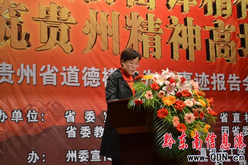 3月30日上午,由省委宣傳部、省文明辦、省直機(jī)關(guān)工委、省委教育工委、省總工會(huì)、省團(tuán)委、省婦聯(lián)聯(lián)合主辦的2012年貴州省道德模范先進(jìn)事跡報(bào)告會(huì)在凱里市行政中心中央會(huì)場(chǎng)舉行。