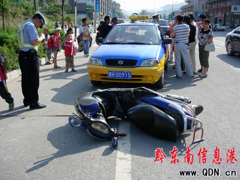 據目擊者稱,當時這輛出租車從縣城6號區載客駛往16號區,當車經過事發地時,一輛輕便摩托車正好從7號區駛過來。這時有一名熟人向摩托車駕駛員打招呼,駕駛員只顧看左邊打招呼人,忽視右邊正常行駛的出租車,釀成慘禍。
