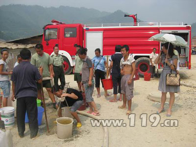看到消防官兵的到來時,被飲水困難愁苦了臉的群眾像看到救星一樣,頓時心花怒放。由于該鎮自來水管道損壞,消防車送完一趟水必須回到縣城來加水,一天至少送三次,消防官兵不辭辛勞,熱情服務,同時還主動幫助年邁的老人挑水,用實際行動踐行了建設一支‘忠誠可靠、服務人民、竭誠奉獻’的消防隊伍。