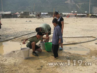 自來水管道損壞群眾斷水 消防挑水送到家(圖)