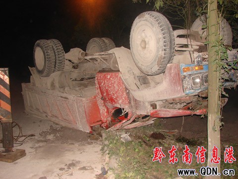 本港訊 (通訊員 蔣偉 攝影報道)2009年9月24日凌晨1時50分,凱里市二龍至三棵樹鎮(zhèn)方向氧化鋁廠內(nèi)發(fā)生一起交通事故,一輛卡車翻下路坎“四腳朝天”,司機被困駕駛室內(nèi)。經(jīng)凱里市消防二中隊積極救援,2時35分,被困司機被救出,并無生命危險。