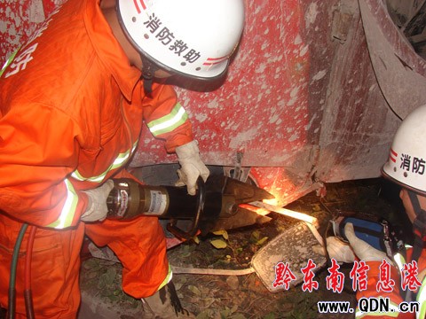 卡車"四腳朝天"司機被困 凱里消防營救成功(圖)