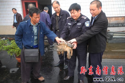 據介紹,該鱷魚龜系天柱縣坪地鎮一村民捕捉后以5000元賣給當地修建公路的某單位職工時被天柱縣森林公安分局收繳。經該縣林業專家初步鑒定,屬鱷魚龜,原產于北美洲和中美洲,是最兇猛的龜類,會主動攻擊人,可一口咬斷人的手指。