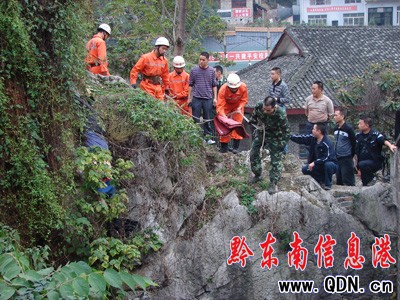 山崖懸掛無名遺體 鎮遠消防順利施救(圖)