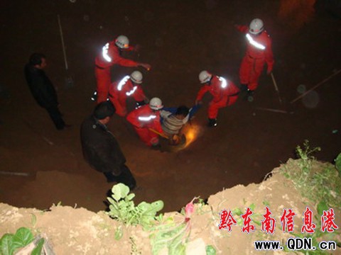 榕江縣排污渠突然倒塌一人被埋 (圖)