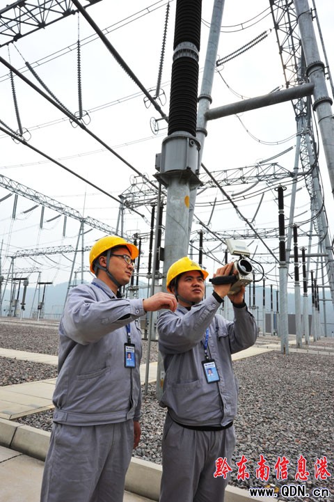 同時,根據冬季負荷變化和天氣特點,完善事故應急機制,做好相應的事故預想和反事故演習工作,進一步提高對電網突發事件的應急處理能力。圖為該局員工在500千伏變電站進行測溫工作。