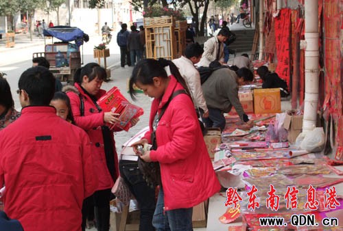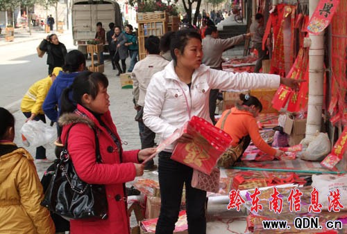 春節即將來臨,雷山縣春節商品市場異常紅火,隨處可見各族群眾購買對聯、燈籠、煙花炮竹、糖果等春節物品的身影。圖為