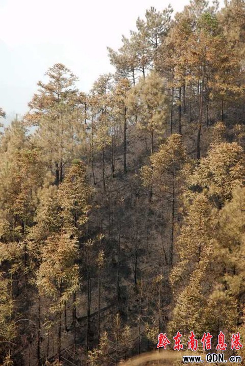 本港訊 (特約記者 雨丹 攝影報道)2月23日下午5時許,雷山縣丹江鎮陶堯村羊茍山上發生森林大火,火勢蔓延到4公里外的西江鎮黃里村黃里坳山上,造成大面積森林被燒毀。當地政府緊急組織消防、武警和群眾共2000多人滅火。2月25日凌晨許,大火全部被撲滅,起火原因尚在調查中。