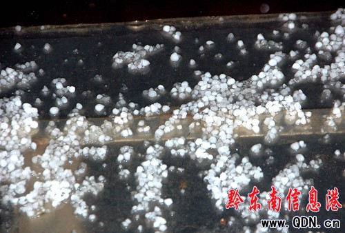 本港訊 (記者 李麗娟 攝影報道)7日晚9時40分許,凱里城區(qū)驟降冰雹。記者在凱里龍井一居民小區(qū)看見,降下的冰雹如花生仁般大小,冰雹驟降時,天空電閃雷鳴,地下噼叭作響……由于冰雹砸下地面的響聲較大,導致停在小區(qū)內(nèi)部分轎車上安裝的報警器“遙相呼應”響個不停。據(jù)氣象部門稱,冰雹持續(xù)時間約10分鐘,最大直徑12mm。