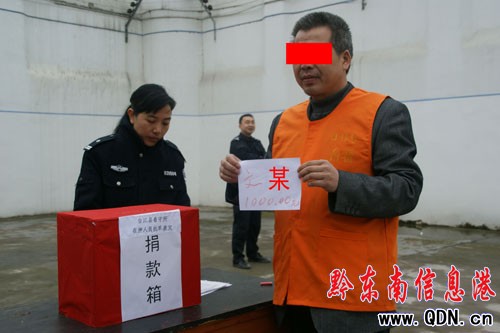 法外有情 臺江"高墻"人犯為旱區救災獻愛心(圖)