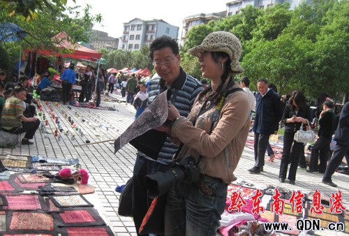 本港訊 (記者 李麗娟 楊懿 攝影報道)4月27日,是臺江縣一年一度的姊妹節,在這熱鬧非凡的日子里,苗族姑娘們穿著盛裝迎接著古老的東方情人節到來。據了解,在臺江縣秀眉廣場還舉行了為期四天的民族民間旅游工藝品展銷,在展銷會現場,記者看到展品豐富多樣,有蠟染、刺繡、名畫以及各式各樣精美的銀飾,吸引了許多外來游客前來觀看購買。