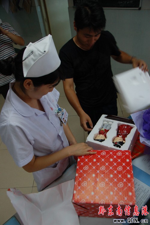 “還有定情之物呀,快打開看看是什么?”人群中有人喊道。王小姐趕緊把包裝盒撕開,看看自己的禮物。李先生發(fā)現(xiàn)她力量不夠,撕得慢,于是拿了過(guò)來(lái),三下五除二就把禮物拿出來(lái)了。原來(lái)是一對(duì)情侶的塑像。“真是有心人呀!”李先生的朋友贊嘆說(shuō)。