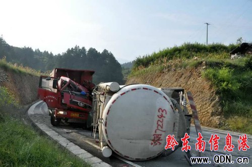 槽罐車側翻撞擊重型自卸車 造成一人死亡(圖)