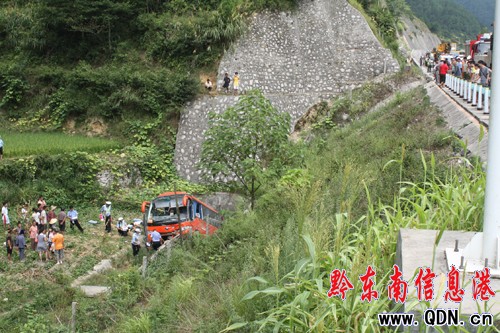 “發生事故時我就在公路旁邊干農活,所以看得很清楚。”事發地附近村民楊某說,大巴車撞翻了護欄后,便滾下了邊坡,連續打了三個滾,才停在了坡腳下的過道上。事故發生時,一位老者被甩出了車廂,掉落在了旁側的土中,頭部滿是鮮血。車輛翻滾還沒有停穩,一女子欲從窗口上跳下來,不料車子還在緩慢移動,其女子腰部被車窗卡住,跳不下來,也進不了車廂,痛苦不堪。