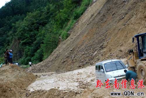 榕江遭遇強降雨 泥石流堵國道(圖)