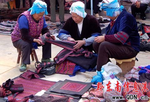 本港訊 (記者 李麗娟 攝影報道)12月4日,在凱里市仰阿莎公園一側的民族工藝品市場上,記者看到,該市場擺滿了當地少數民族刺繡服裝、繡片以及各種民間老工藝品等。據了解,每逢周末,很多少數民族賣家就會來到該市場擺攤、設點,將自己的精美刺繡作品拿到該市場上來賣,正因如此,該市場吸引了許多慕名而來的喜愛收藏少數民族刺繡等物品的愛好者和旅游者前來“淘寶”。