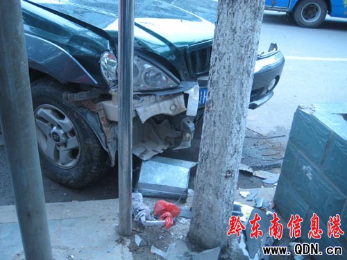 據(jù)了解,30日中午13時(shí)左右,一輛貴H現(xiàn)代越野車從永樂社區(qū)坡頂橫飛直下,兩路人因躲閃不及被撞倒在地,之后該車又撞到一位正在綠化壇邊掃地的環(huán)衛(wèi)工人。“當(dāng)時(shí)我正好路過協(xié)和醫(yī)院,聽到一聲慘叫后,看見一輛現(xiàn)代越野車撞上了綠化帶花壇”,目擊者劉先生告訴記者:“當(dāng)時(shí)我還以為凱里會(huì)出現(xiàn)‘我爸是李剛,我怕誰(shuí)’的事件,沒想到司機(jī)下車后急忙撥打了120,還好不是李剛事件。”不少目擊者表示應(yīng)該是車子突然失控,才釀成了剛才驚險(xiǎn)的一幕。