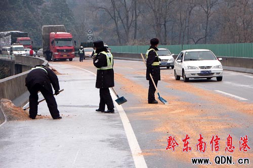 “這段路共有20多座橋梁,所有橋路面上的凝凍都沒有完全消融,最厚達3厘米。”一夜幾乎未眠的大隊長劉吉祥說,盡管多次往這些橋面上撒砂、撒鹽,但撒后冷風一吹,冰凝重又形成。
