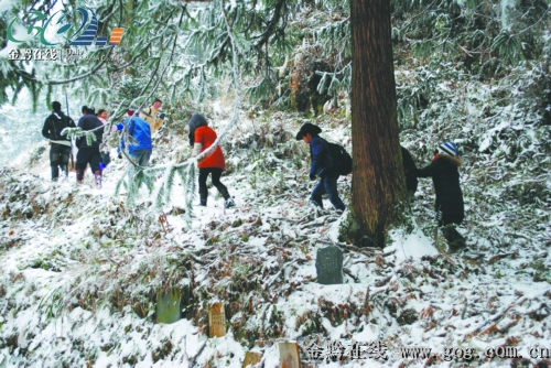 據金黔在線-貴州都市報 連日來普降大雪,讓位于黔東南自治州錦屏縣固本鄉境內的青山界銀裝素裹、粉妝玉砌的冰雪世界。雪后的青山界分外妖嬈,吸引了附近苗鄉侗寨的大批游客紛至沓來,踏雪、滑雪、雪景合影、雪地狩獵成了人們青山界上賞雪的首選活動。