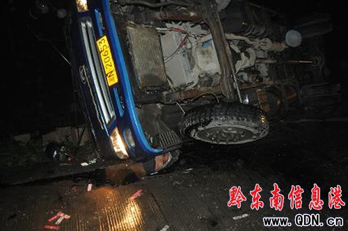 22時(shí)34分,大隊(duì)救援官兵到達(dá)現(xiàn)場后,立即對現(xiàn)場情況進(jìn)行勘察,發(fā)現(xiàn)大貨車因側(cè)翻,車頭副駕駛室一面把人死死壓于下面,經(jīng)救援人員偵察,被困人員已無生命跡象。根據(jù)現(xiàn)場情況,消防官兵試圖從駕駛室門上救出,但因救援空間小,且又無法擴(kuò)張和破拆,救援工作陷入了困境。23時(shí)06分,吊車到達(dá)現(xiàn)場,救援工作再次展開,在大貨車被吊起固定時(shí),救援官兵打開副駕駛室車門,順利將遇難者救出。