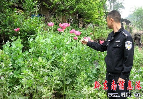 4月29日,有群眾向凱里市公安局龍場派出所報警,稱龍場漁洞一住戶家自留地里非法種植罌粟。這位村民告訴民警,起初并不知道該植物是罌粟,近來見其頂端開出艷麗的花朵后,經上網查詢才知是罌粟。
