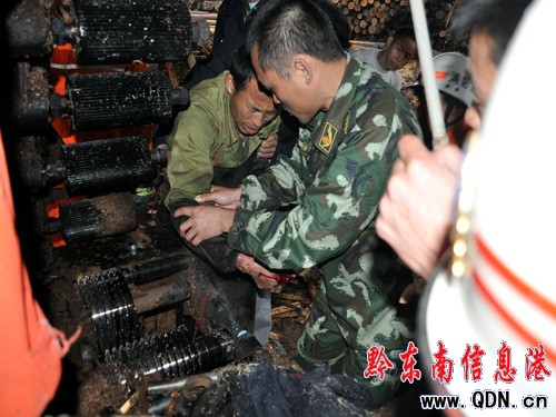 5月11日18時16分,三穗縣利源加工廠一名工人由于疏忽大意致使右手被卡在鋸木機里,動彈不得。三穗縣消防大隊接到報警電話后,8名消防官兵乘坐2輛救援車趕往現場救援,成功排除了險情。