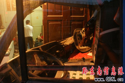 10日凌晨2時許,一輛解放大卡在鎮遠縣城東下長坡入城時失控,沖出路肩,壓過兩株行道樹后,把一棟民房的一面墻撞出一個大豁口,繼而前沖,撞在緊鄰的另一棟民房上。車子嚴重變形,駕駛室被嚴重擠壓,所幸駕駛員安全逃生,未受重傷。